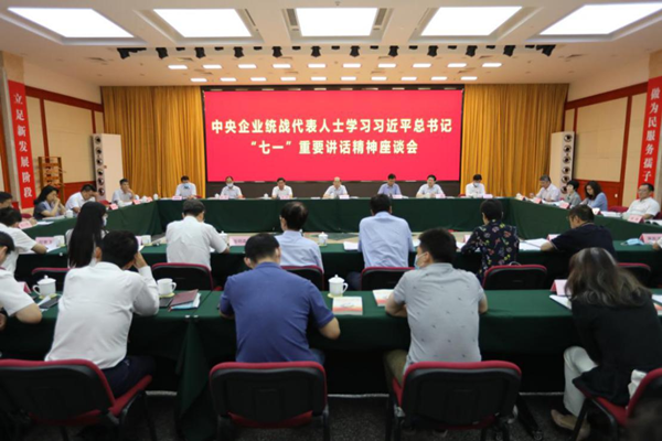 会议认为,深入学习领会、坚决贯彻落实习近平总书记“七一”重要讲话精神是当前和今后一个时期中央企业统一战线的重大政治任务。会议认真总结、充分肯定新时代中央企业统战工作取得的新成效和统战代表人士在建言献策、履行政治责任、投身重大工程项目等方面作出的重要贡献,传达学习中央企业、地方国资委负责人学习贯彻习近平总书记“七一”重要讲话精神研讨班精神,要求中央企业广大统战代表人士在深化学习、提高认识,统一思想、发挥优势,努力成长、加强引导上下功夫,真正成为企业建言献策的“智囊团”、科技创新的“攻坚队”、联系广泛的“生力军”。中央企业统战部门要履行好参谋、组织协调、具体执行、监督检查等职能,为统战代表人士发挥作用提供强有力保障。